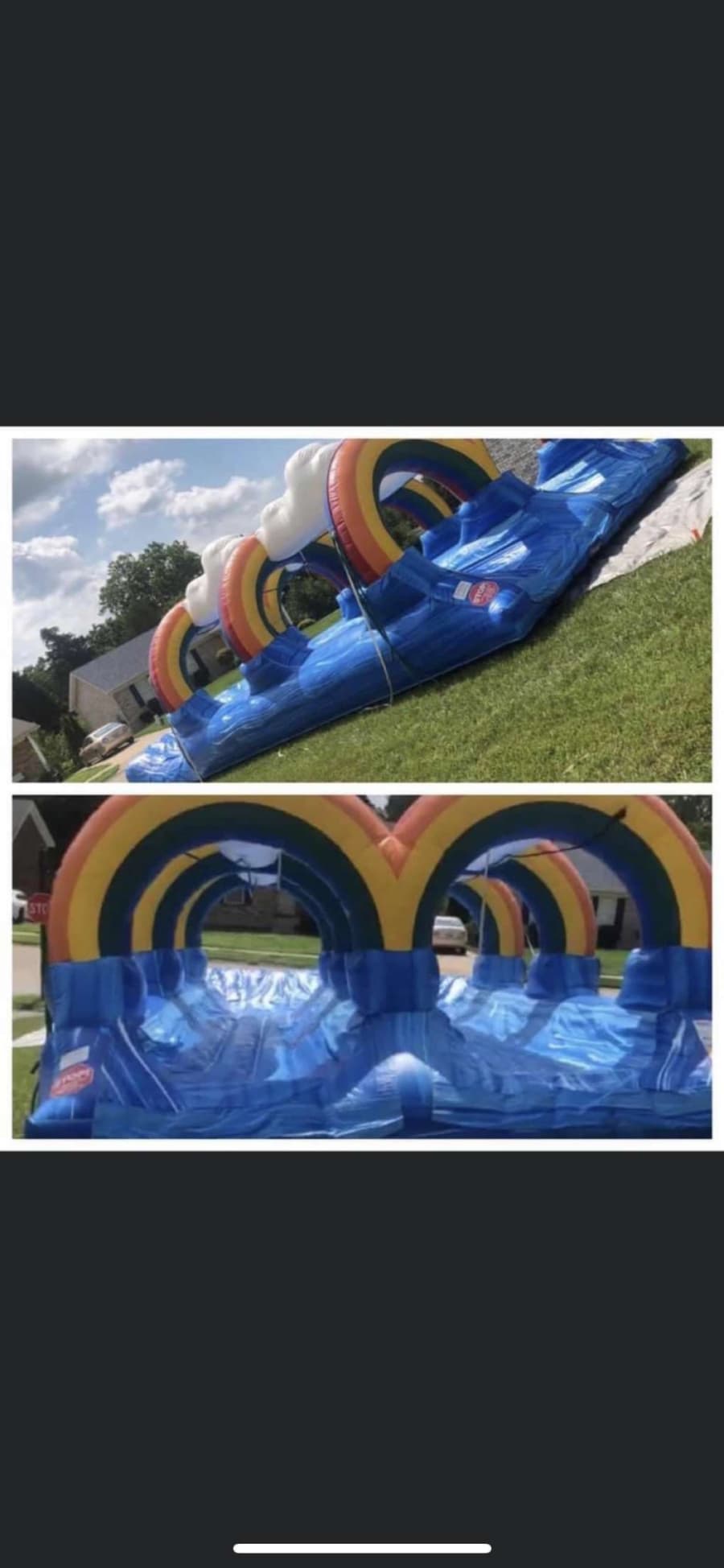 Make your next event unforgettable with the 42’ Rainbow Slip n’ Slide. 🌈 Extra large and super heavy, this dual-lane waterslide delivers nonstop fun. Perfect for birthday parties and backyard get-togethers. Safe. Fast to set up. Fun for all ages. 💦