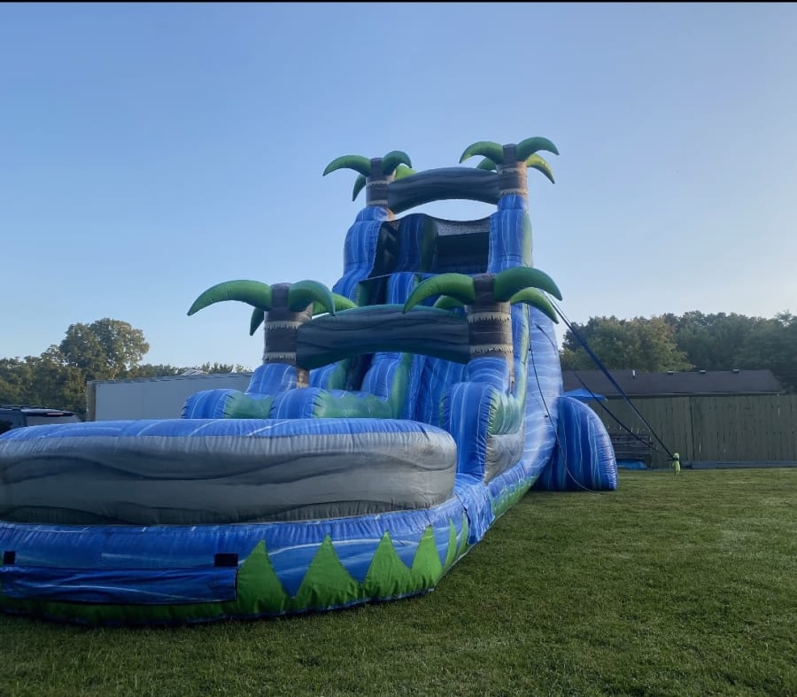 Waterslide rentals 24’ Big Tropical Slide in All of Louisville and surrounding areas, southern Indiana and surrounding area areas delivers instant excitement. This 24-foot tropical water slide works wet or dry. Extra-wide lane. XL splash pool. Perfect for kids and families. Fast setup. Safe, thrilling rides for ages 4 and up. 🎉