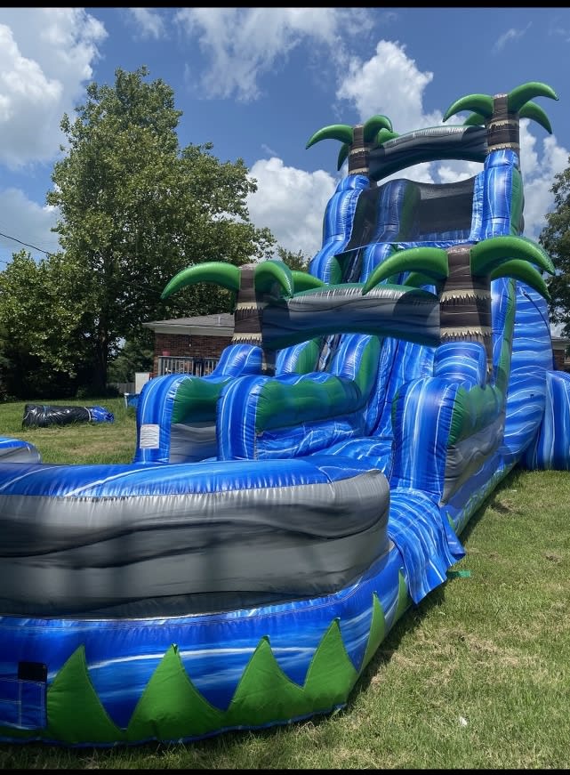 Waterslide rentals 24’ Big Tropical Slide in All of Louisville and surrounding areas, southern Indiana and surrounding area areas delivers instant excitement. This 24-foot tropical water slide works wet or dry. Extra-wide lane. XL splash pool. Perfect for kids and families. Fast setup. Safe, thrilling rides for ages 4 and up. 🎉